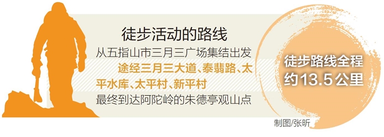 據了解,徒步活動的路線是從五指山市三月三廣場集結出發,途經三月三大道、泰翡路、太平水庫、太平村、新平村,最終到達阿陀嶺的朱德亭觀山點,徒步路線全程約13.5公里。本次徒步活動不計成績,參與者在規定時間內走完全程即完成任務,即可獲得參與抽獎活動的資格。報名參加活動的徒步愛好者,除可以免費領取紀念T恤、抽繩背包和紀念獎牌外,還將有機會獲得由五指山水云間文化旅游區提供的旅游大禮包,禮包分一等獎、二等獎、三等獎和優秀獎若干。其中,一等獎價值3888元(含烤全羊、住房券、玻璃漂流票和五指山紅茶等)。