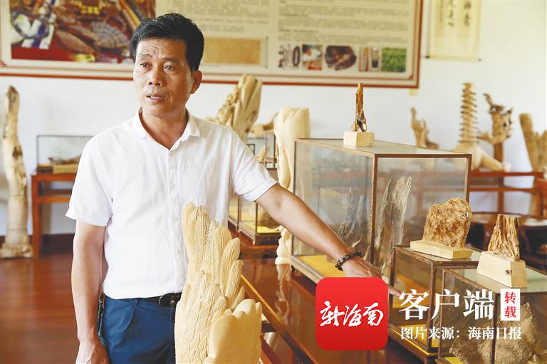 11月18日,蔡親信在效古沉香展覽館介紹沉香展品。海南日報記者 蘇曉杰 通訊員 王家專 圖\文