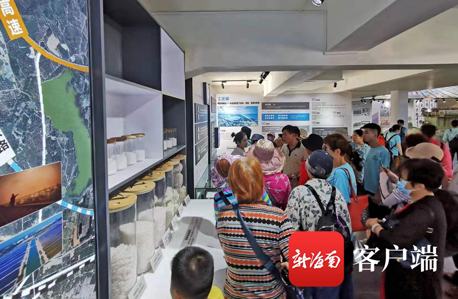 當天,游客們一同走進樂東,參觀鹽文化館和體驗粗鹽、細鹽生產景觀、收鹽作業景觀 ,“重走鹽工路”等體驗活動,感受鶯歌海鹽場精神。工作人員介紹,遇到漲潮時,海水從納潮口閘流入儲水湖,通過揚水站,再流過蒸發池,鹽濃度逐級升高,成了鹵水。隨后,進入結晶區開始結晶成鹽。樂東除了盛產優質鹽外,鹽田還有別樣的風景,一望無垠的銀白色鹽海,渠道縱橫有序,銀光閃閃,景象十分美麗。