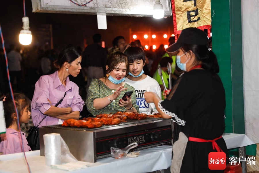 陵水酸粉、長沙臭豆腐、陜西肉夾饃……擼著烤串,喝著啤酒,在舞臺下和歌手互動是一種什么體驗?在濱海夜市集的現場,市民游客可以輕松解鎖這樣的特別體驗,因為這里吃喝玩樂“一網打盡”。
