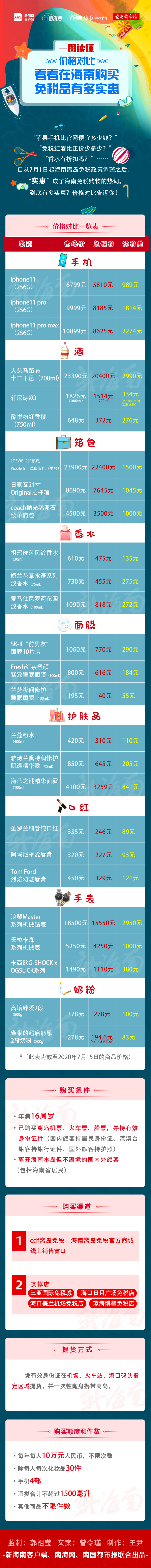 施宗偉:離島旅客可以在海南的特定的離島免稅商店內購買化妝品、箱包、手表等45大類商品。每人年度總免稅限額為10萬元,其中化妝品每人每次限購30件,手機每人每次限購4件,酒每人每次1500毫升,其余商品無限制。