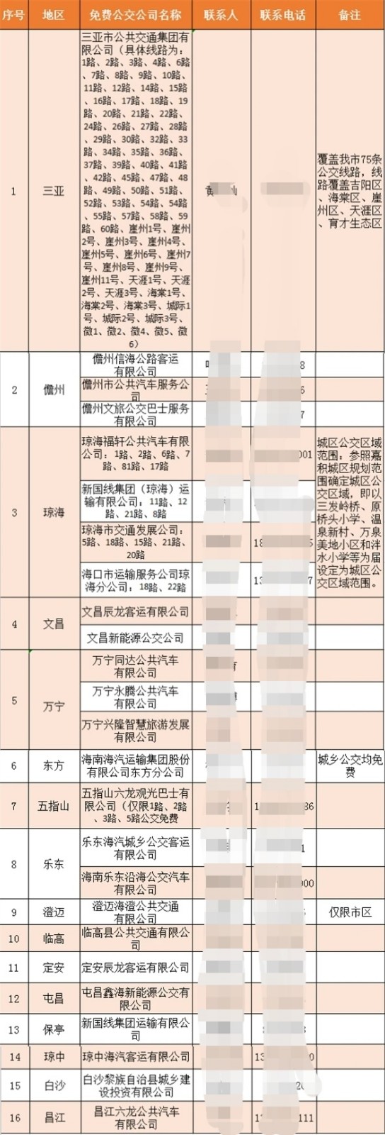 目前持“海南省無償獻血榮譽卡”可免費乘坐的公交車目錄