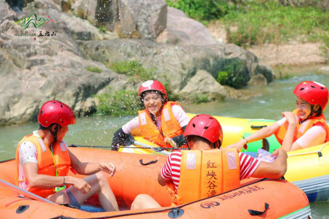 08:30-09:00 酒店大堂集合,乘車前往五指山紅峽谷景區漂流大賽起點