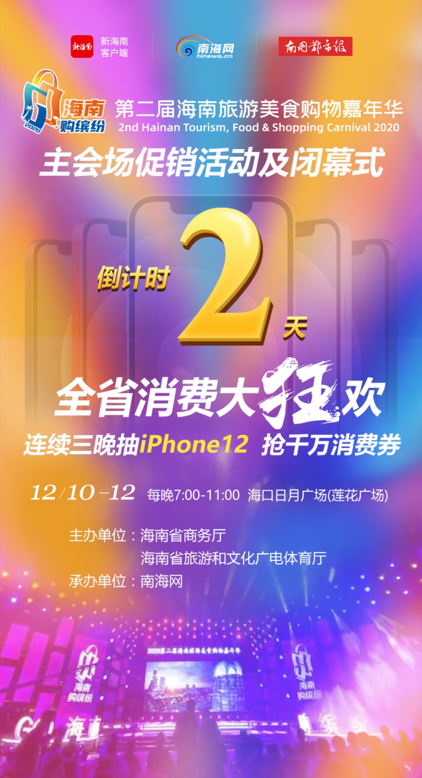 首頁 > GO海南 購繽紛 | 海南旅游美食購物嘉年華3天促銷大聯(lián)歡即將登場 免費抽的iPhone12又來啦