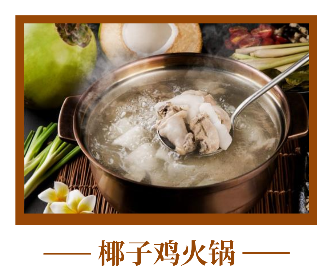 椰子水煮的底湯,清香甘甜,鮮嫩多汁的文昌雞再蘸點海南金桔酸料的點綴,讓人回味無窮。還可以加入其他吃火鍋時常有的配菜一同烹煮,一樣的美味哦。