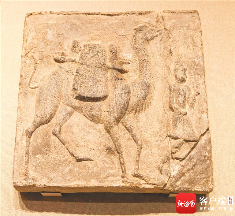 展出的胡人牽駝磚(唐代)。海南日報記者 宋國強 攝