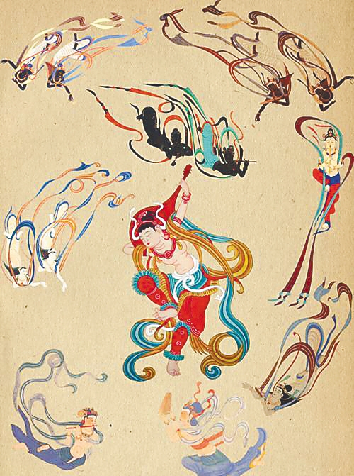 在佛教的“凈土勝地”中,音樂與舞蹈是不可或缺的要素。據統計,在現存敦煌石窟中保留有舞樂題材的洞窟共有236個,其中繪有各種類型的樂隊約500組,且大多伴有舞蹈場面;所出現的各種類型的樂器計有44種4500余件之多。在全世界的壁畫歷史中,就反映的樂舞數量之多、品類之豐富、時間跨度之長而言,敦煌壁畫都是無與倫比的。