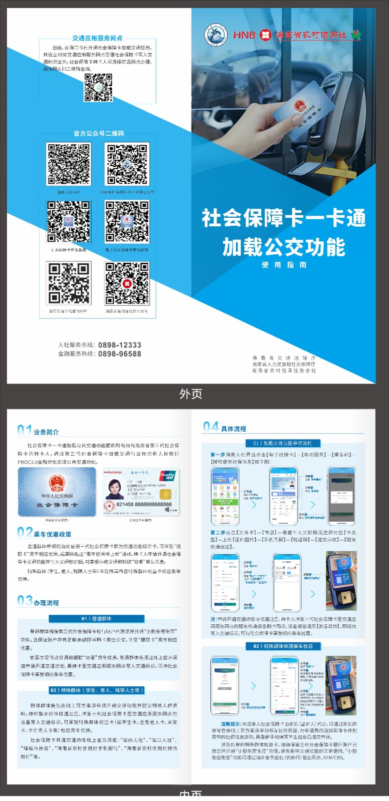 新聞發布會透露,今年4月,海南省交通廳會同省人社廳開始啟動社會保障卡一卡通加載公共交通功能的工作,前期開展電子社會保障卡加載交通運輸部互聯互通碼的對接、公交掃碼機具的投放以及相關系統的升級改造工作。目前,海南已完成全省主要市縣社會保障卡公交讀卡終端機具改造、電子社??虞d交通碼等工作,從12月15日開始,??谑芯用窨沙值谌鐣U峡ㄋ⒖ǔ俗鞘泄卉?,特殊群體還可享受優惠服務,明年將在全省各市縣逐步推廣,并將上線電子社??⊕叽a乘車應用。