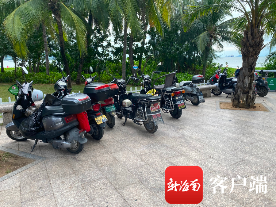 三亞灣邊電動車亂停亂放。記者 張宏波 攝
