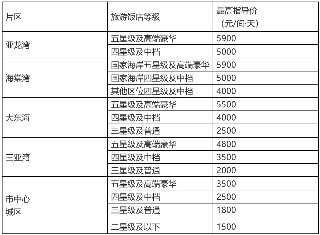 新海南客戶端、南海網、南國都市報12月23日消息(記者劉麗萍)12月23日,記者從三亞市發展改革委獲悉,該委印發了《三亞市2021年春節期間旅游飯店標準客房價格調控實施方案》,公布2021年春節期間旅游飯店標準客房價,最高限價5900元/間。