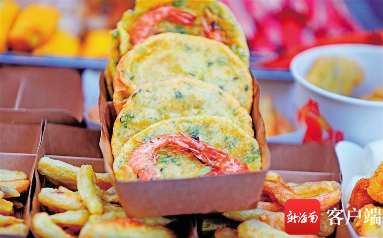 “這是芒果腸粉,這叫甜薯甩,都是瓊海涼爽系列。”12月30日下午,海口天氣雖然降溫了,但仍然是暖陽天。在海口市金龍路上邦百匯城廣場,數十個小吃展位前匯集了眾多食客,展位經營者一邊忙著加工小吃美食,一邊給客人介紹著瓊海的特色小吃。