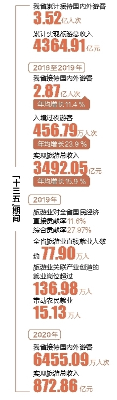 2020年是“十三五”規(guī)劃收官之年。過去五年,在省委省政府的堅強領導下,我省旅文系統(tǒng)聚焦改革發(fā)展穩(wěn)定任務,實施一系列利當前、惠長遠的重大工程、重大政策、重大舉措,“十三五”規(guī)劃確定的目標任務基本完成,旅游和文化廣電體育產(chǎn)業(yè)和事業(yè)發(fā)展取得突破性進展,為建設具有世界影響力的國際旅游消費中心奠定了良好基礎。