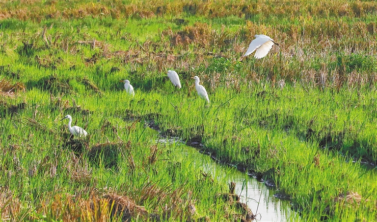 嫩綠的禾苗迎風微微頷首。“水盈為洋,水退為田”,新舊溝濕地鄉村公園規劃區自然稟賦優異,蜿蜒婉轉的三橋溝、野趣盎然的林澤濕地、清澈見底的涌泉、綠樹成蔭的灌木林自然風光極其秀美。