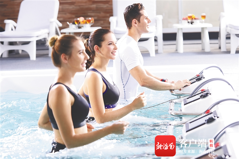 康養旅客正在體驗水下跑步機。