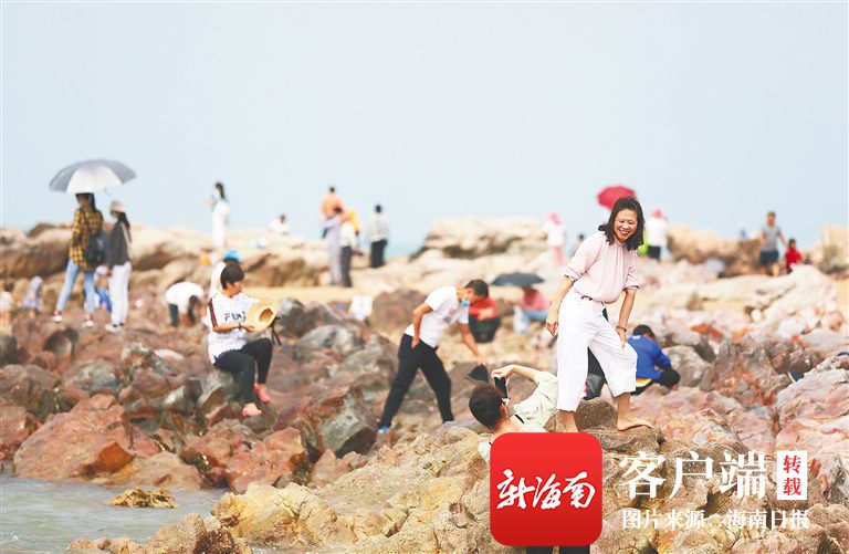 2月16日,游客在東方市魚鱗洲風景區的礁石上拍照留念。海南日報記者 李天平 攝