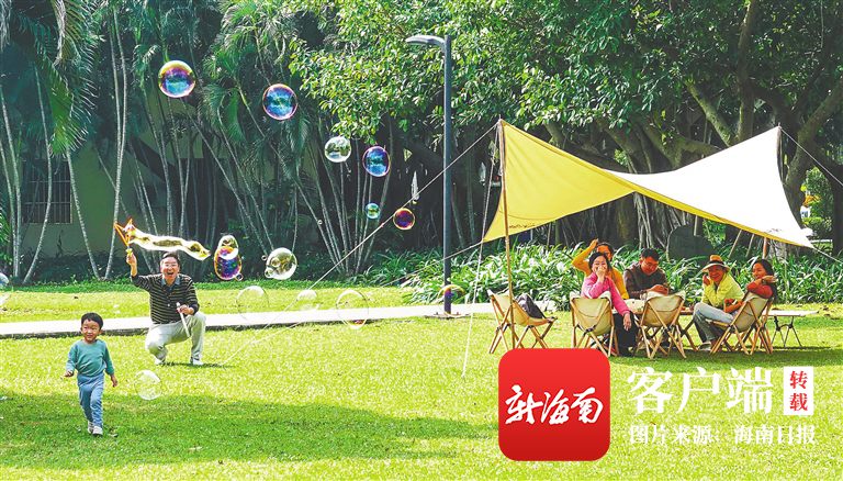 2月16日,海口市萬綠園,綠草如茵,市民游客盡情享受春節假期的歡樂。海南日報記者 陳元才 攝