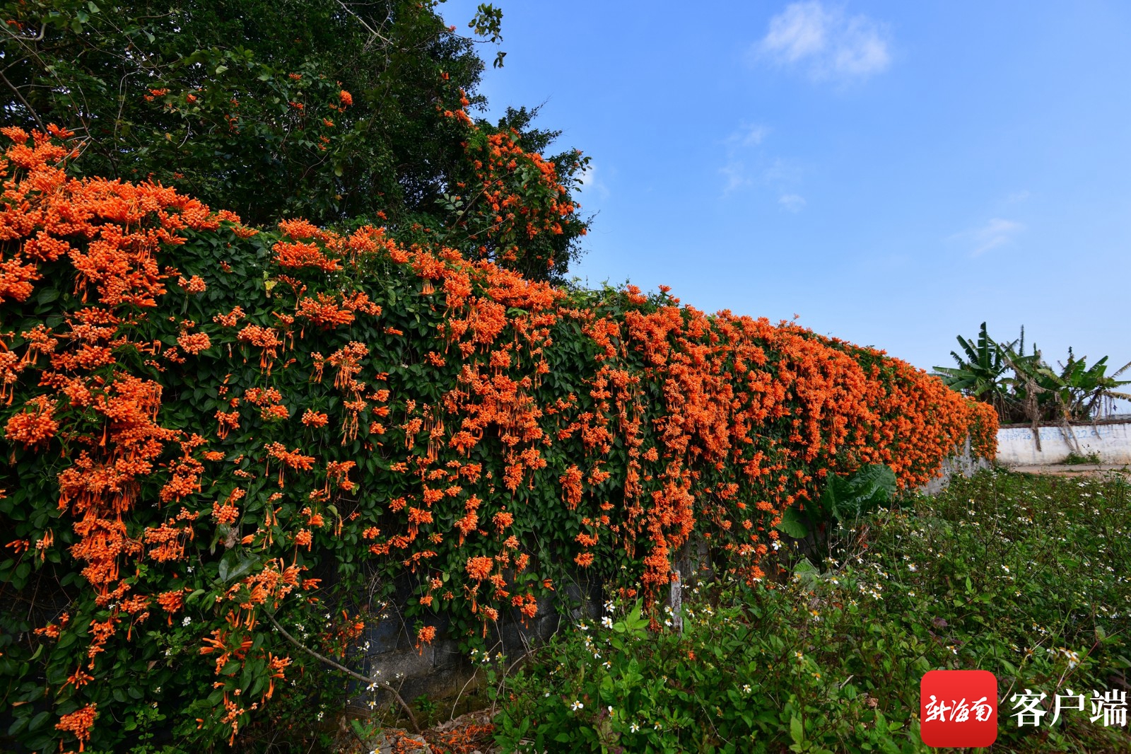 組圖 | 驚艷!海口有處30多米長炮仗花圍墻