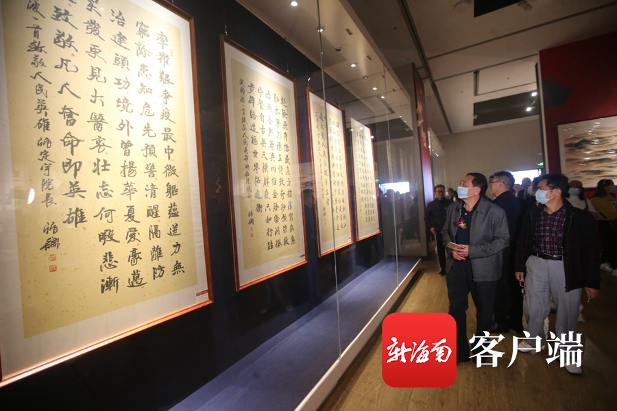 “珠崖碧綠繽紛艷·南天錦繡祥云飛——中國當(dāng)代大師書畫展”在海南省博物館展出。記者陳望 攝