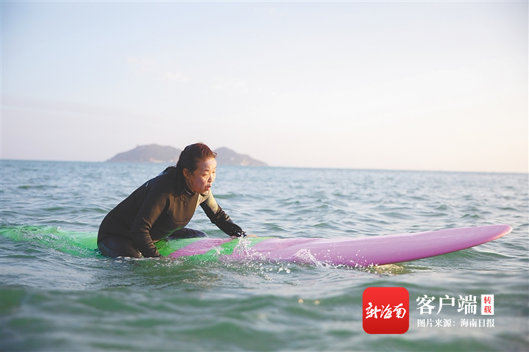 蘇敏在海南學沖浪。