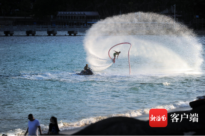 ?游客在三亞體驗“水上飛龍”。記者 沙曉峰攝