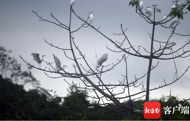 3月23日,三亞學院白鷺溪畔,白鷺在樹上棲息。記者 沙曉峰 攝