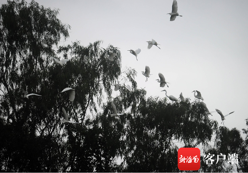 3月23日,三亞學院白鷺溪畔,成群結隊的白鷺飛舞嬉戲。記者 沙曉峰 攝