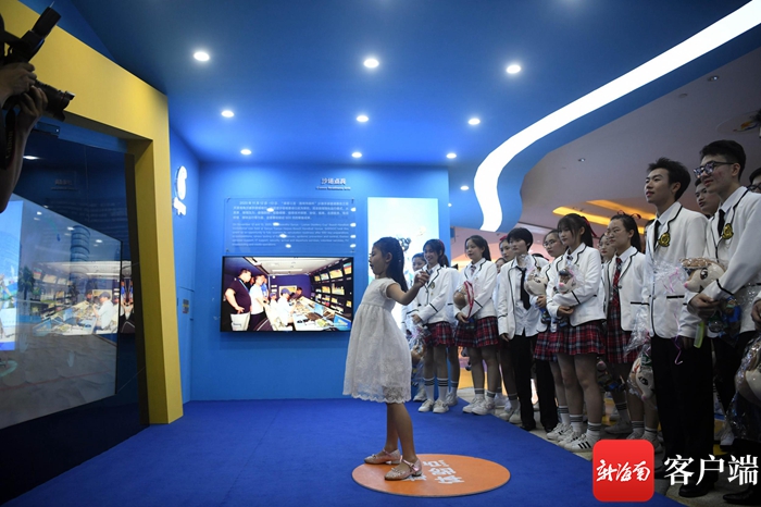 在“亞沙館”展板上,亞沙會組委會成立、亞沙會會徽和口號發(fā)布、吉祥物“亞亞”發(fā)布、志愿者招募和培訓、宣傳推廣歌曲發(fā)布、首批火炬手和體育圖標公布、亞沙委臨時黨委成立、沙灘手球邀請賽舉辦等一系列賽事籌辦重要節(jié)點和里程碑事件一一呈現(xiàn),有力地體現(xiàn)了“亞沙速度”與“三亞風采”。現(xiàn)場展出的亞沙會相關(guān)報紙版面和新聞鏈接則從另一個角度解讀了亞沙會籌辦歷程。作為亮點之一的“助力自貿(mào)港、喜迎亞沙會”校園優(yōu)秀作品征集活動獲獎作品展示,勾勒出孩子們對亞沙會的美好期待。“祝福亞沙、留下永恒”這8個大字作為“亞沙館”文字展覽部分的結(jié)束詞,凝結(jié)著對亞沙會的期待與祈盼,也懷揣著對體育的熱愛和三亞的憧憬。