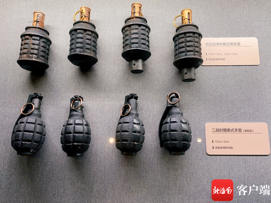 渡海紀念館內展示的手雷。記者蘇靚攝