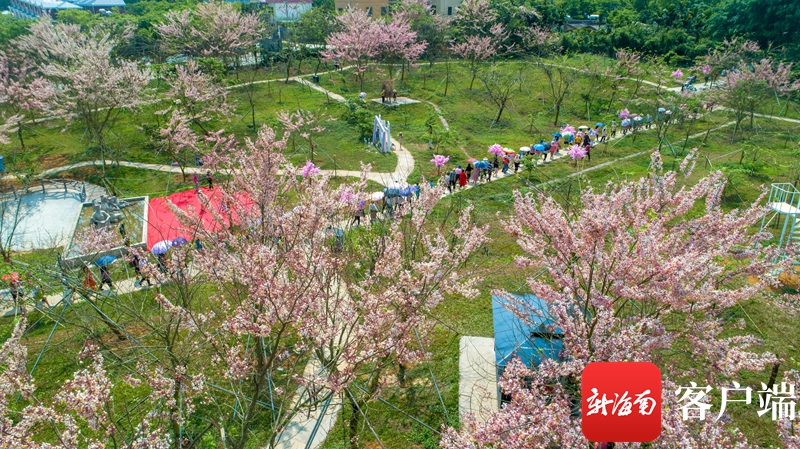 3月29日,儋州市蘭洋鎮(zhèn)藍(lán)洋櫻花莊園正式開園,園內(nèi)櫻花綻放,吸引了不少游客前來賞櫻、拍照打卡。記者 李昊 攝