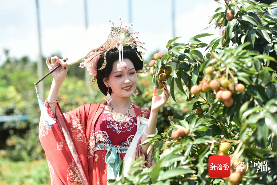 活動現場,游客穿著漢服采摘荔枝。定安旅文局供圖