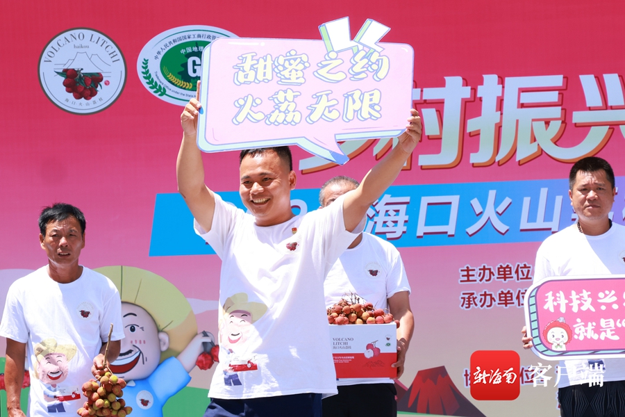 活動現場,10位“荔志叔”身穿火山荔枝主題文化T恤、手拿特色小道具,分別登臺展示自家種植的優質荔枝,用登臺“走秀”、個性化“比武宣言”的方式,上演了精彩熱鬧的海口“荔志叔”風采秀,分享荔枝豐收的喜悅,展現新時代海口“新農人”風采。