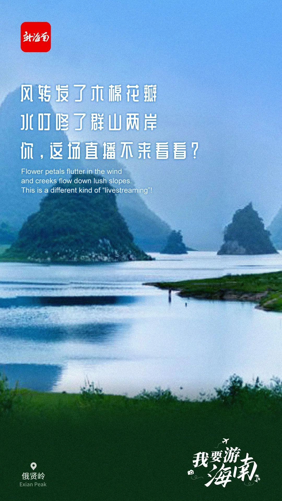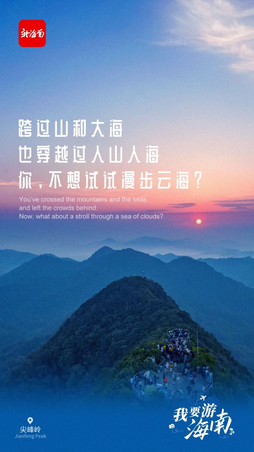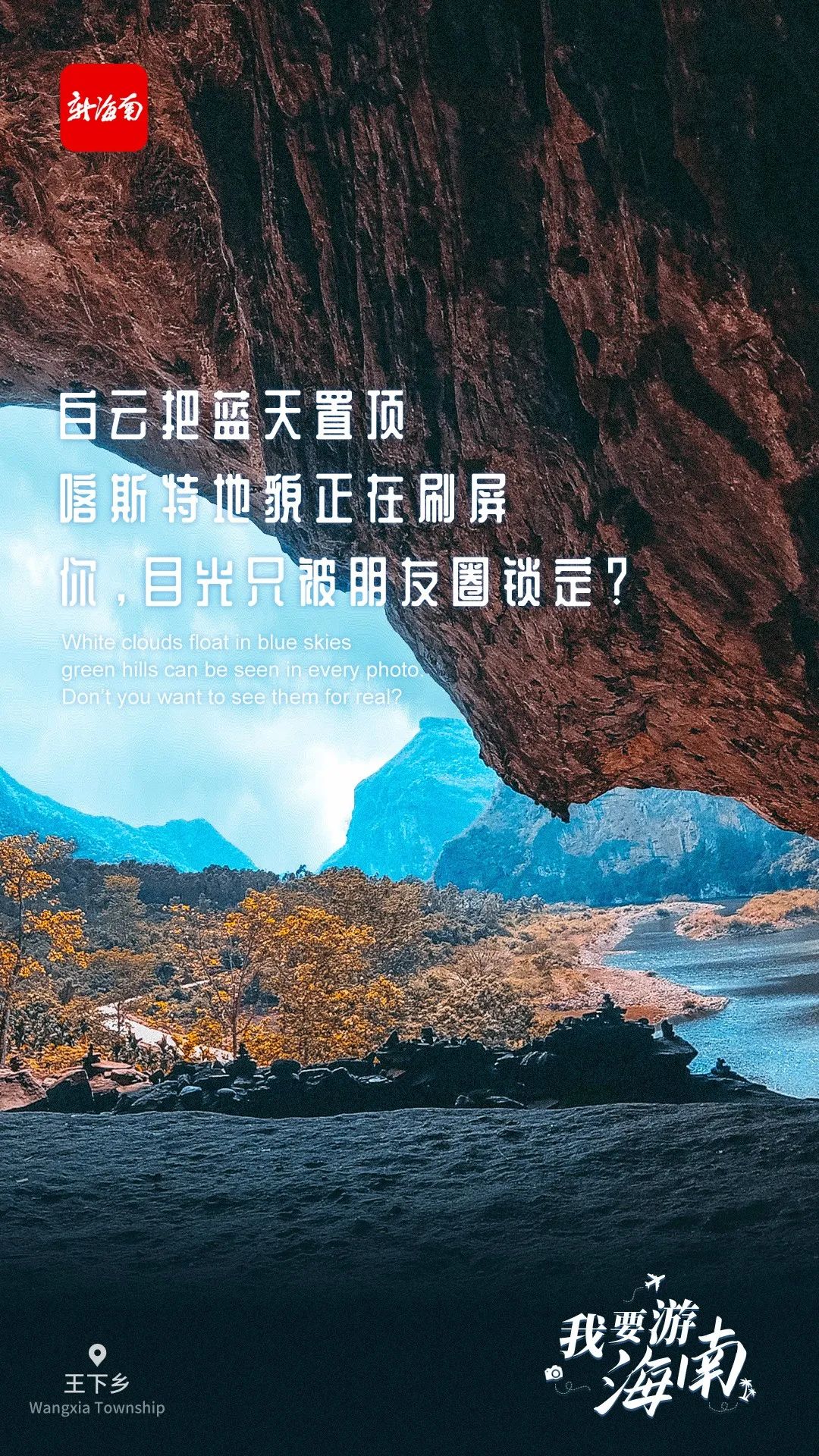 海南日報海口5月19日訊 (海報集團全媒體中心記者吳春媚)5月19日是中國旅游日。新海南客戶端、南海網、南國都市報、海南國際傳播中心聯合推出創意海報《我要游海南》,盤點海南景色亮麗的寶藏打卡地。這組海報以富有畫面感的“三行情詩”文案、高清精美大圖,充分展現海南旅游的魅力。