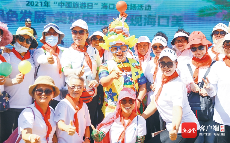 5月19日,參加“中國旅游日”海口分會場活動的游客在現場合影。本報記者 張茂 攝