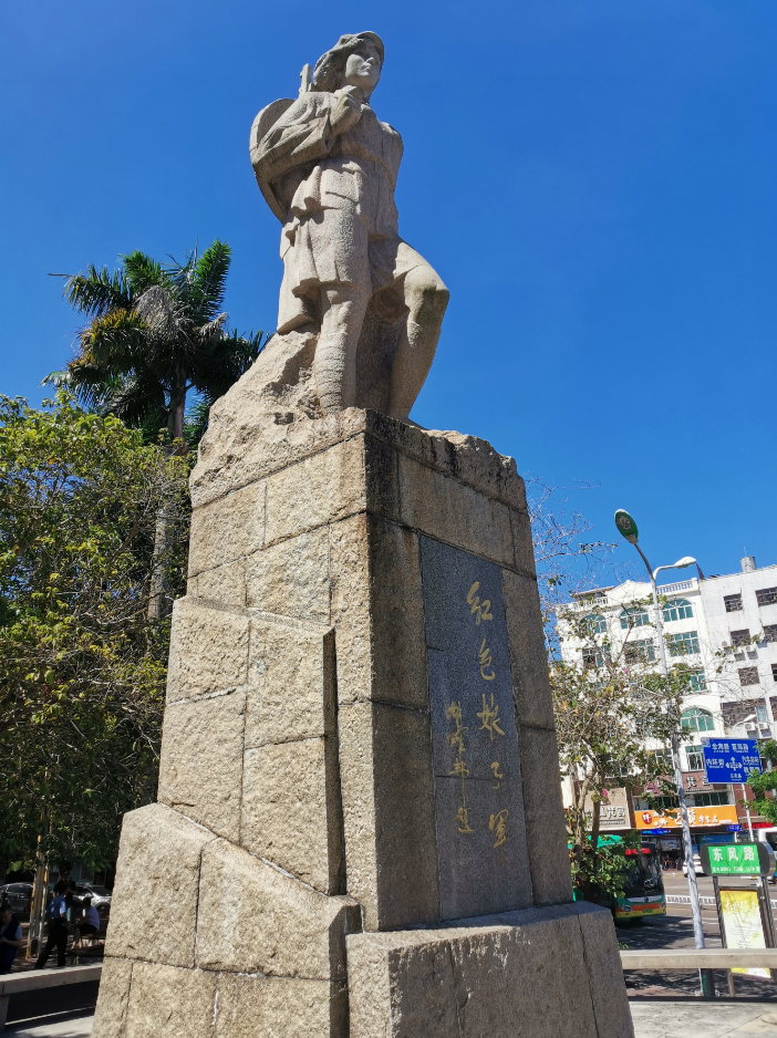 “向前進,向前進,戰士的責任重,婦女的冤仇深,古有花木蘭替父去從軍,今有娘子軍扛槍為人民……”,紅色娘子軍,是國人心中抹不去的一份紅色記憶,伴著腦海中浮現的影視作品中的形象,采訪團來到紅色娘子軍的故鄉瓊海市南門的街心公園,這里矗立著著名的“紅色娘子軍”雕像。