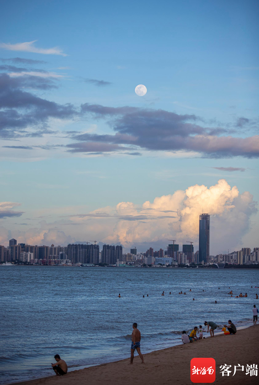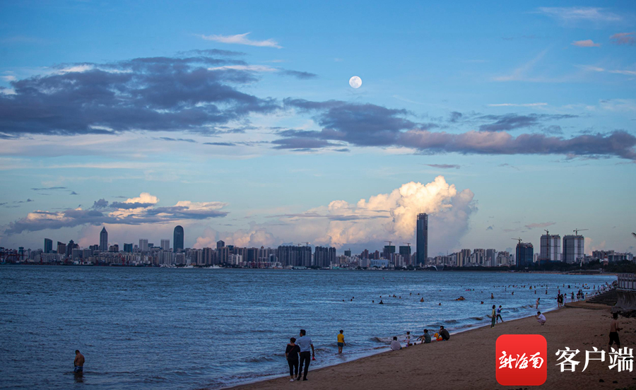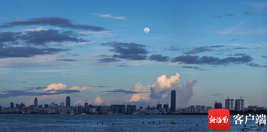 海口天空中的明月。記者 劉洋攝