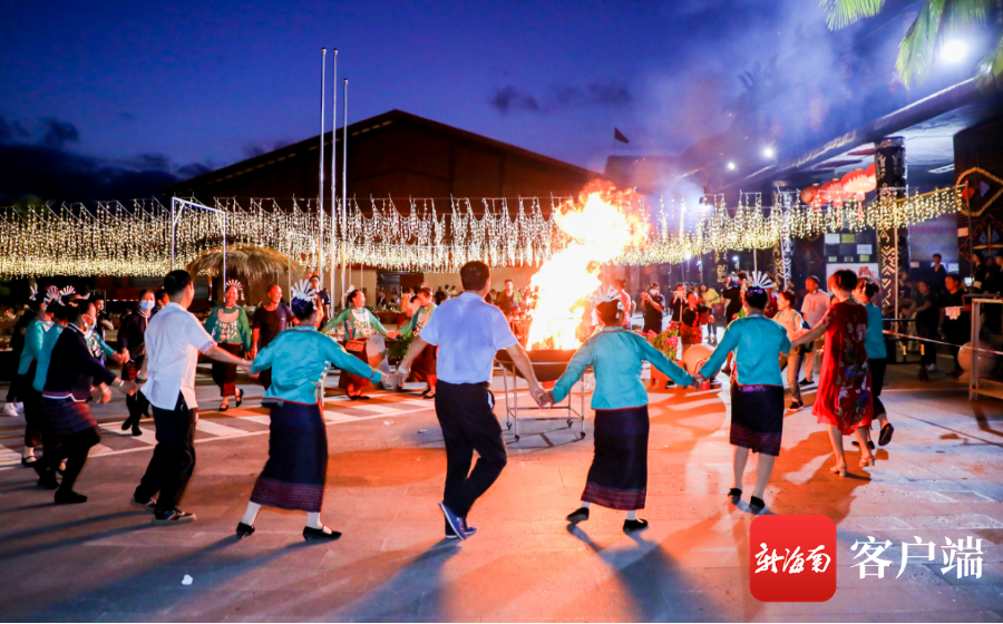 5月29日下午,海南陵水椰田古寨首屆黎族苗族文化節開幕。圖為市民游客參加篝火晚會。記者 利聲富 攝