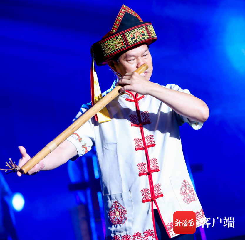 5月29日下午,海南陵水椰田古寨首屆黎族苗族文化節開幕。圖為鼻簫表演。記者 利聲富 攝