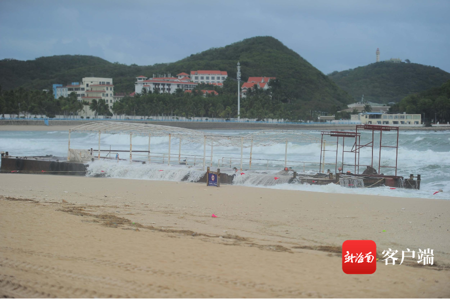新海南客戶端、南海網、南國都市報6月12日消息 (記者沙曉峰 )據海南省氣象部門消息,南海熱帶低壓的中心已于12日9時50分在陵水黎族自治縣新村鎮一帶沿海地區登陸,登陸時中心附近最大風力有7級(15米/秒),中心最低氣壓998百帕。受其影響,三亞海邊掀起大浪,一大型海上平臺被海浪推到岸邊。