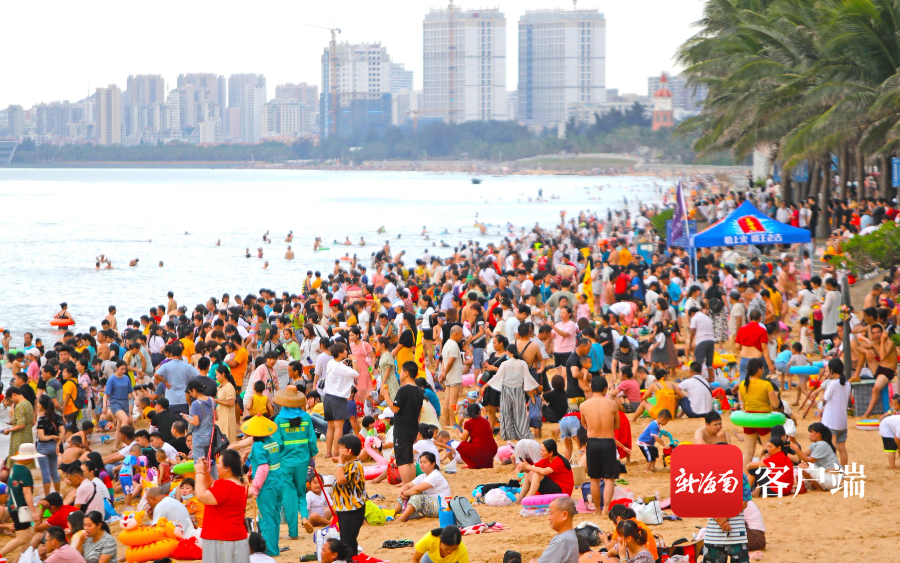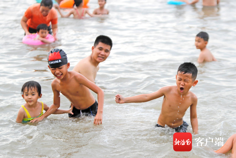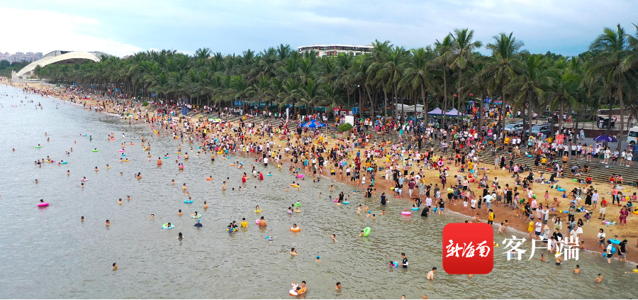 組圖 | 現場直擊!海口市民游客假日海灘花式“洗龍水”