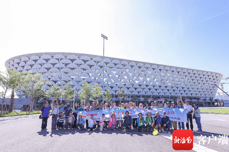 攝影師們在三亞國際體育產業園體育場合影。記者 沙曉峰 攝