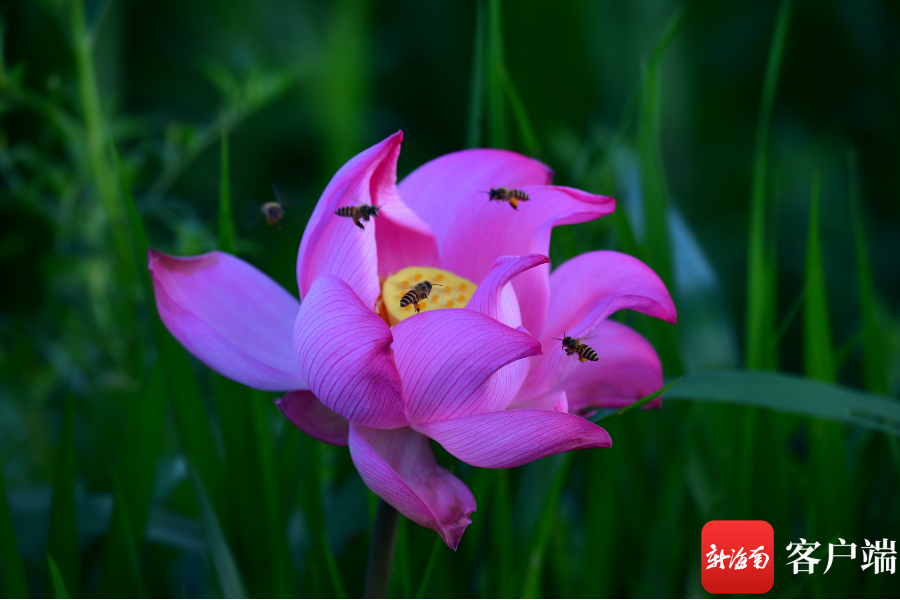 新海南客戶端、南海網、南國都市報6月28日消息(記者 陳衛東)盛夏,正是荷花盛開的季節,海口五源河國家濕地公園里,比足球場還大的一片荷花正在盛開,荷葉間藏有小鳥,水面有鴨子,花朵上蜜蜂飛舞。據種植荷花的村民說,今年是20年來荷花最好的一年。