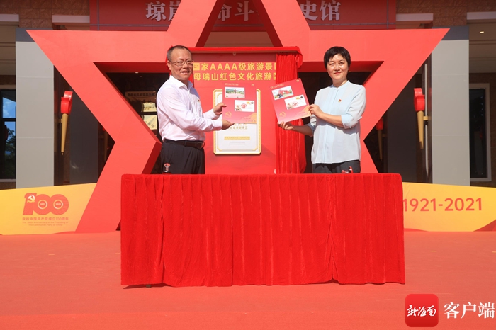 儀式上,海南省旅文廳和定安縣有關領導共同為母瑞山紅色文化旅游區國家4A級旅游景區揭牌,并為母瑞山成為國家4A級旅游景區后的第一張明信片蓋章留念。