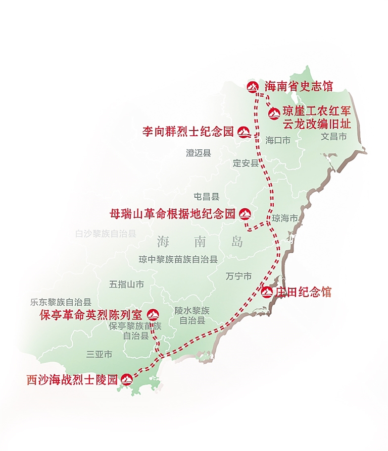 就分布來看,海口、文昌、瓊海、儋州、定安、澄邁等地處海南島東部、北部的市縣遺址較多,東線高速也串聯起許多紅色旅游景點,引領人們回望波瀾壯闊的革命史詩。