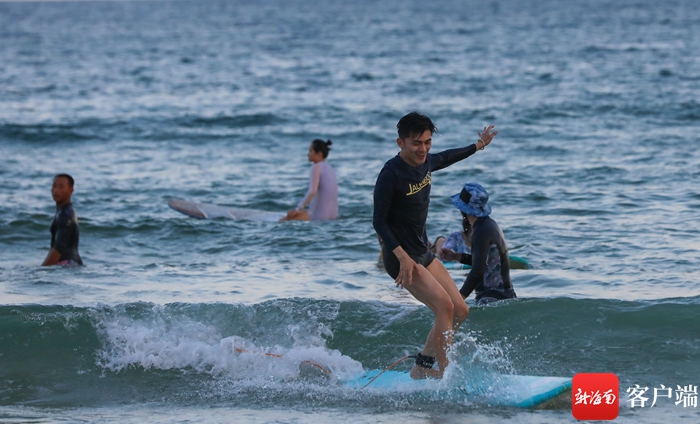 “海天一色,碧波蕩漾,這里的海真美……”17日下午,由海外傳播官、國內知名攝影師、航拍大咖、大V成員、記者編輯等組成的全媒體采訪團看到萬寧日月灣時感嘆道。隨后,嘉賓們在戒浪·不沖浪俱樂部換好裝備后,經過專業教練半個多小時的指導,北京周報社英文記者陶幸和其他網媒行成員抱著沖浪板,來到日月灣海邊嘗試沖浪?!斑@是人生中的第一次沖浪,本以為沖浪是非常困難的事,但是經過多次嘗試,我找到了技巧,踏著板沖起來了,真是太刺激了。希望有機會還來日月灣沖浪?!碧招艺f。