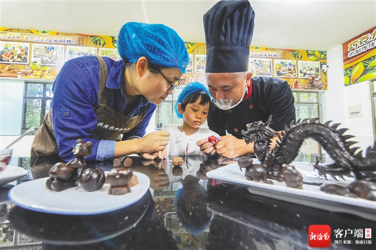 萬寧興隆熱帶植物園,小朋友在制作巧克力。 海南日報記者 袁琛 攝