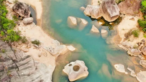 蜿蜒曲折的南巴河,滿河都是誘人的大美風(fēng)光,河道兩岸,群山夾持,森林茂密,蒼翠欲滴;河床上遍布的巖石,被河水研磨得圓滑玉潔,崢嶸瑰麗,形態(tài)各異,富含故事;河水淺處清澈透底,深處碧綠如玉,明鏡般的水面倒映著青山藍天,寧靜而安詳。