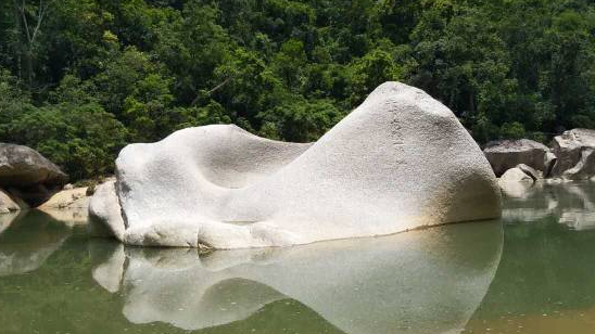 石頭高過兩個人頭,寬及兩手展臂,長至兩人身長,中間可站立數(shù)人;凹下之處可容水,但久置會被石頭吸收耗盡,潑灑在石頭上的水,稍后也被蒸發(fā),石頭永遠(yuǎn)保持其潔白光亮,純潔無瑕,很多情侶喜歡在此海誓山盟,表白喜結(jié)良緣、見證純潔愛情,共守白頭偕老。
