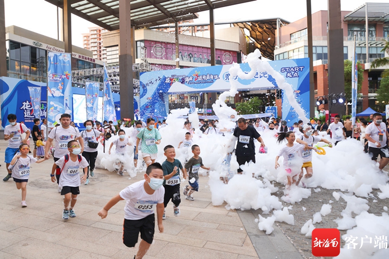 夜幕初垂,熱身完畢,集結于此的約300組島內外親子家庭在發令槍響后沖入泡泡海洋,賽道上的四個泡泡基站營造出顏色各異的泡泡,伴隨著熒光道具的點綴和歡快音樂的助陣,家長和孩子們在此收獲了夏日里的一抹清涼,2021年海南青少年體育夏令營暨花YOUNG海南運動嘉年華由此正式啟幕。