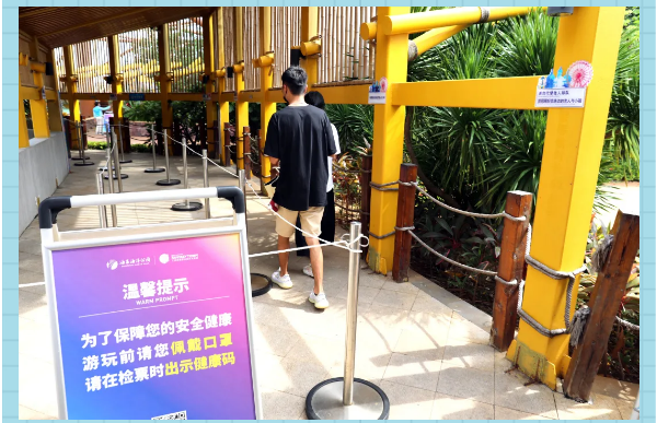 ●園區已啟動疫情防控應急預案,一旦出現疑似癥狀的游客,將立即將其送至防疫隔離點。