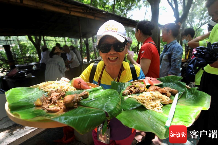 中午時分,參加活動的游客們興致勃勃地品嘗了海南特色美食簸箕餐。簸箕餐是黎族苗族傳統餐食,具有濃郁的農家風味和民族特色。下午游客們還參觀了鱷魚基地。雖然人工飼養的鱷魚比起野生的少了一些野性,但與水中惡獸近距離地接觸,還是讓游客們感到非常驚心、開心。